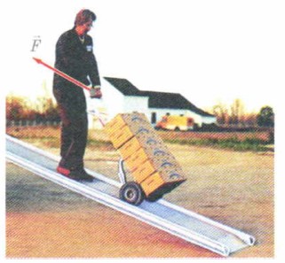 Рис. 24.2. Подъём груза по наклонной плоскости Блоки и наклонная плоскость — примеры простых механизмов. К числу простых механизмов относится также рычаг — его мы рассмотрим в следующем параграфе (с помощью рычага также можно поднимать груз силой, которая в несколько раз меньше веса груза, — при этом сила может быть направлена как вверх, так и вниз).