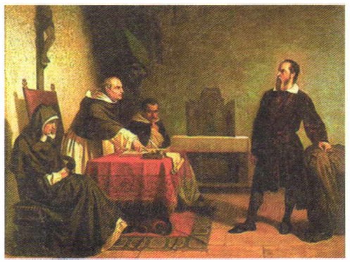 Галилей перед судом инквизиции Под угрозой пыток Галилея заставляют отречься от учения Коперника. Но согласно преданию Галилей после отречения произносит: «А всё-таки она вертится!» (имея в виду Землю). После суда Галилей считается узником инквизиции и живёт под домашним арестом. Но он продолжает работать, и в 1638 году в Голландии выходит вторая его великая книга — «Беседы и математические доказательства, касающиеся двух новых отраслей науки...». В этой книге подводится итог основным научным исследованиям Галилея. Галилей понимал, что его титанический труд — только начало великого и бесконечного пути познания природы. Он скромно писал: «...Моя работа послужит основанием науки, которую великие умы разработают обширнее». И здесь Галилей тоже оказался прав: не прошло и года после его смерти, как в Англии родился его великий последователь — Исаак Ньютон. Он развил идеи Галилея и сформулировал основные законы механики. В качестве первого из них Ньютон взял открытый Галилеем закон инерции (см. §12. Закон инерции. Масса тела). Когда Ньютона спросили, как он смог сделать столько великих открытий, он ответил: «Я стоял на плечах гигантов». И главным из них был, конечно, Галилей!