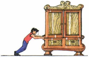 § 17. Силы трения Сила трения покояЧто мешает сдвинуть шкаф?Как трудно сдвинуть с места тяжёлый шкаф (рис. 17.3)! Какая же сила уравновешивает при этом силу, которую мы прикладываем к шкафу?