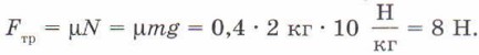 § 17. Силы трения Сила трения скольжения или сила трения покоя?При решении некоторых задач, в которых надо определить силу трения, основная трудность состоит в том, чтобы выяснить, является ли сила трения в данном случае силой трения скольжения или силой трения покоя. Рассмотрим пример. РЕШИМ ЗАДАЧУ На столе лежит брусок массой 2 кг. Коэффициент трения между бруском и столом равен 0,4. Чему будет равна сила трения, действующая на брусок со стороны стола, если потянуть брусок, прикладывая к нему горизонтальную силу, равную: а) 5 Н; б) 10 Н? Примите максимальную силу трения покоя равной силе трения скольжения. Р е ш е н и е. Если сила, с которой тянут брусок, меньше максимальной силы трения покоя или равна ей, то брусок останется в покое. Максимальная же сила трения покоя по условию равна силе трения скольжения. Поэтому найдём, чему равна сила трения скольжения. Мы знаем, что для неё справедливо соотношение Fтр = μN, где N = mg. Получаем В случае а) брусок тянут с силой 5 Н. Эта сила меньше, чем максимальная сила трения покоя, — значит, брусок останется в покое, а действующая на него сила трения — это сила трения покоя. Она уравновешивает силу, с которой тянут брусок, поэтому сила трения между бруском и столом равна 5 Н. В случае б) брусок тянут с силой 10 Н. Эта сила больше, чем максимальная сила трения покоя. Значит, брусок будет скользить по столу и на него будет действовать сила трения скольжения, равная, как мы уже знаем, 8 Н. О т в е т: а) 5 Н; б) 8 Н.