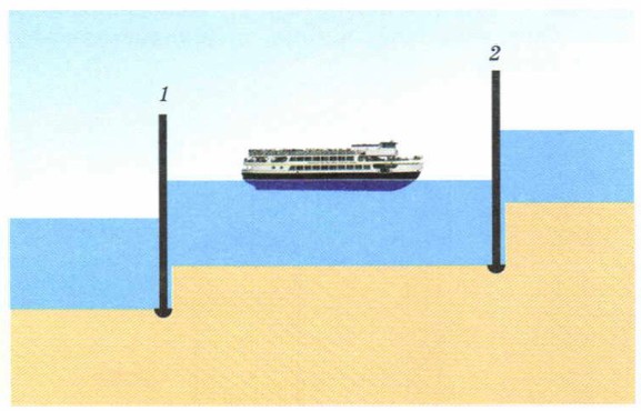 § 20. Зависимость давления жидкости от глубины. Закон сообщающихся сосудов ШлюзыЭлектроэнергия на гидроэлектростанции вырабатывается благодаря тому, что вода, падающая с высоты многоэтажного дома, вращает турбины. Поэтому при постройке гидроэлектростанции создают перепад уровней воды. Для этого строят огромную плотину, перегораживающую реку. А чтобы река оставалась судоходной, рядом с плотиной делают шлюзы, действие которых основано на законе сообщающихся сосудов. Шлюз представляет собой одну или несколько камер, в каждой из которых может поместиться одновременно несколько судов. Камеры отделены друг от друга плотно закрывающимися воротами. На рис. 20.5 схематически изображена одна из камер шлюза.