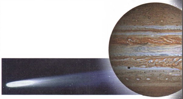 Комета — имеет три составные части: голова, ядро, хвост. Вращается вокруг Солнца, масса около 10-4 массы Земли. Вид кометы меняется по мере приближения к Солнцу. Вещество кометы сосредоточено в ядре и состоит из смеси замёрзших газов, пылинок и металлических частиц. При приближении к Солнцу комета прогревается и из неё выделяется газ и пыль, образуя голову и хвост. С помощью комет получают сведения о свойствах космического пространства.
