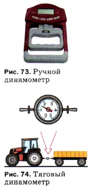 Проградуированная пружина и будет простейшим динамометром. С помощью динамометра измеряют не только силу тяжести, но и другие силы (сила упругости, сила трения и т. д.). Например, для измерения силы различных мышечных групп человека используют медицинские динамометры. Для измерения мускульной силы руки при сжатии кисти в кулак применяют ручной динамометр — силомер (рис. 73). Применяют также ртутные, гидравлические, электрические и другие динамометры. В последнее время широко применяются электрические динамометры. Они состоят из датчика, который преобразует деформацию в электрический сигнал. Для измерения больших сил, таких, например, как тяговые усилия тракторов, тягачей, локомотивов, морских и речных буксиров, используют специальные тяговые динамометры (рис. 74). Ими можно измерить силы до нескольких десятков тысяч ньютонов. Вопросы1.Как называют прибор для измерения силы?