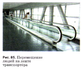 На рисунке 85 изображён транспортёр, который устанавливают в крупных торговых центрах для перемещения людей. Люди удерживаются на ленте транспортёра силой трения покоя. Сила трения покоя удерживает гвоздь, вбитый в доску, не даёт развязаться банту на ленте, удерживает нитку, которой сшиты два куска ткани, и т. п. Вопросы1. Какая сила удерживает тела на наклонной плоскости?