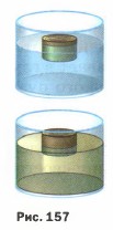 2. На рисунке 157 изображено одно и то же тело, плавающее в двух разных жидкостях. Плотность какой жидкости больше? Почему? Что можно сказать о силе тяжести, действующей на тело, и архимедовой силе в том и другом случае?