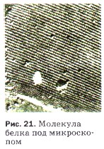 Из-за очень малых размеров молекулы невидимы невооружённым глазом или в обычные микроскопы. Но при помощи специального прибора — электронного микроскопа — удаётся сфотографировать наиболее крупные из них. На рисунке 21 показано расположение молекул белка, являющегося важной частью питания организма человека и животных. Окружающие нас тела, даже похожие на первый взгляд, будут различны. В природе вы не встретите двух совершенно одинаковых снежинок или песчинок, людей, животных и пр. Учёные с помощью опытов доказали, что молекулы разных веществ отличаются друг от друга, а молекулы одного и того же вещества одинаковы. Например, воду, полученную из сока или молока, нельзя отличить от воды, полученной путём перегонки из морской воды. Молекулы воды одинаковы. Из таких молекул не может состоять никакое другое вещество. Молекулы, в свою очередь, состоят из ещё более мелких частиц — атомов (в переводе с греческого «неделимый»).