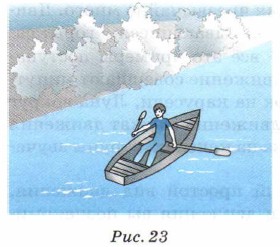 Глава 1. Механические явления § 10. Относительность механического движенияКакие виды механического движения вам известны? 1. Главная особенность любого движения — его относительность. Представьте себе, что вы сидите в лодке и смотрите на воду в реке (рис. 23). Можно ли уверенно сказать, что лодка движется? Что вы сделаете, чтобы убедиться в этом? Конечно же посмотрите на берег и тогда уже скажете, движется лодка или стоит на месте.