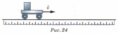 Другой пример. Вы находитесь в поезде и во время остановки смотрите в окно на стоящий рядом поезд. Затем ваш поезд начинает медленно двигаться, и через несколько минут вы с изумлением видите промелькнувший «хвост» другого поезда, а ваш, оказывается, продолжал всё время стоять у той же самой платформы. 2. Эти примеры показывают, что судить о движении тела можно, только сопоставляя его с каким-либо другим телом, которое принято называть телом отсчёта. Автомобиль движется относительно шоссе или домов у обочины, птица — относительно дерева, тележка с грузом (рис. 24) — относительно стола. А движется ли находящийся на тележке груз?