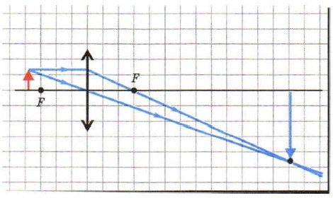Рис. 29.5. Построение даваемого собирающей линзой изображения предмета, расположенного немного дальше фокусного расстояния линзы
