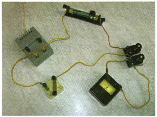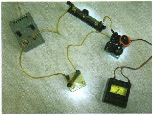 4. Закрепите две катушки электромагнита с использованием сердечников на общем основании. Соедините одну катушку (через реостат) с источником постоянного тока, а другую — с миллиамперметром. Замыкая и размыкая ключ, наблюдайте за отклонениями стрелки миллиамперметра. В какие моменты во второй катушке возникает индукционный ток? Чем обусловлен этот ток? Запишите сделанный вами вывод.