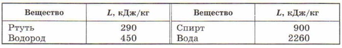 § 5. Парообразование и конденсация Удельная теплота парообразованияЧтобы превратить жидкость в пар, надо передать ей некоторое количество теплоты. Полученная энергия расходуется на разрыв межмолекулярных связей при превращении жидкости в пар. Опыты показывают, что количество теплоты Q, необходимое для того, чтобы превратить жидкость в пар при постоянной температуре, пропорционально массе жидкости. Поэтому можно записать Q = Lm. Коэффициент пропорциональности L называют удельной теплотой парообразования. Она численно равна количеству теплоты, которое необходимо сообщить 1 кг жидкости, чтобы полностью превратить её в пар. Единицей удельной теплоты парообразования является Ниже приведены значения удельной теплоты парообразования для некоторых веществ1. Обратите внимание на большую удельную теплоту парообразования воды. 1 При температуре кипения соответствующего вещества и атмосферном давлении.