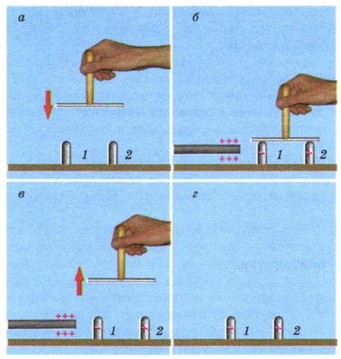 Рис. 8.3. Электризация с помощью электростатической индукции