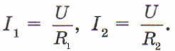 § 14. Последовательное и параллельное соединения проводников Параллельное соединение (окончание)При параллельном соединении проводников напряжение на них одинаково: U = U1 = U2. Сравним значения силы тока в проводниках. Согласно закону Ома