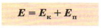 • Полная механическая энергия, т. е. сумма потенциальной и кинетической энергии тела, остаётся постоянной, если действуют только силы упругости и тяготения и отсутствуют силы трения.