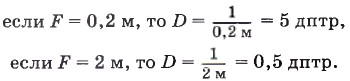 За единицу оптической силы принята диоптрия (дптр). 1 диоптрия — это оптическая сила линзы, фокусное расстояние которой равно 1 м. Если фокусное расстояние линзы меньше 1 м, то оптическая сила будет больше 1 дптр. В случае, когда фокусное расстояние линзы больше 1 м, её оптическая сила меньше 1 дптр. Например,