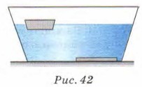 Глава 2. Механические свойства жидкостей, газов и твёрдых тел § 14. Плавание судов. ВоздухоплаваниеОт каких величин зависит выталкивающая сила, действующая на погружённое в жидкость или газ тело? Каковы условия плавания тел? 1. Проделаем опыт. Возьмём две пластины одинакового размера, вырезанные из жести. Поскольку размер пластин одинаков, равны значения их массы и на них действует одинаковая сила тяжести. Из одной пластины сделаем коробочку и опустим пластину и коробочку на поверхность воды. Увидим, что пластина утонет, а коробочка будет плавать на поверхности воды (рис. 42).