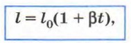 где l0 — длина тела при температуре 0 °С, β — температурный коэффициент линейного расширения. Этот коэффициент показывает, во сколько раз от своего первоначального значения изменяется линейный размер тела при его нагревании на 1 °С. Единицей температурного коэффициента линейного расширения является градус в минус первой степени (1 град-1 или 1 К-1).