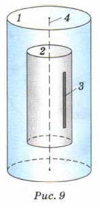 Установка в опыте Штерна состояла из двух жёстко связанных цилиндров 1 и 2, имеющих общую ось (рис. 9). В стенке внутреннего цилиндра была проделана щель 3, а вдоль оси цилиндра натянута платиновая нить 4, покрытая серебром. Нить нагревали, с неё испарялись атомы серебра, которые пролетали через щель и осаждались на внутренней поверхности внешнего цилиндра.