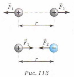 Глава 6. Электрические явления Закон КулонаСледует также учесть, что силы взаимодействия двух точечных зарядов направлены вдоль прямой, соединяющей их (рис. 113).
