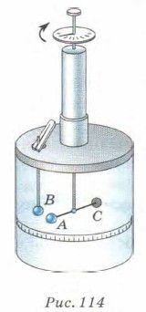 4. Закон Кулона был установлен экспериментально с специального прибора — крутильных весов (рис. 114). Рассмотрим, как устроены и действуют крутильные весы.