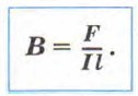 5. Измерив силу, действующую на проводник с током, силу тока в проводнике и его длину, можно определить модуль вектора магнитной индукции и единицу измерения. В самом деле, поскольку для каждого конкретного однородного поля сила F, действующая на проводник длиной l, по которому течёт ток силой I, зависит только от самого магнитного поля, то отношение