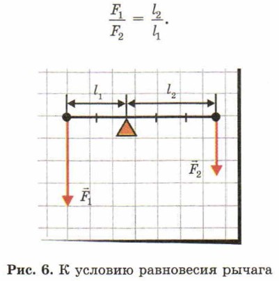 Материалы для повторения при подготовке к государственной итоговой аттестации Простые механизмы (окончание)Условие равновесия рычагаРычаг находится в равновесии (рис. 6), если приложенные к рычагу силы стремятся вращать его в противоположных направлениях, причем модули сил обратно пропорциональны плечам сил: