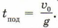 При подъеме тела его скорость уменьшается согласно формуле υ = υ0 - gt, где g — модуль ускорения свободного падения. Следовательно, скорость станет равной нулю через время Достигнув высшей точки, тело на мгновение остановится и начнет двигаться вниз с ускорением свободного падения. Скорость тела при движении вниз будет увеличиваться согласно формуле υ = gt, где время t отсчитывается теперь от момента, когда тело находилось в высшей точке.