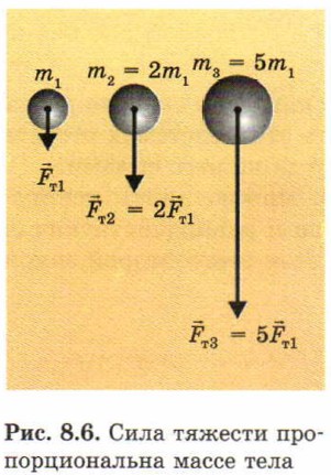 Благодаря тому что сила тяжести пропорциональна массе тела (рис. 8.6), можно измерить массу тела с помощью взвешивания. Как мы покажем ниже, взвешивая тело, мы измеряем действующую на него силу тяжести.
