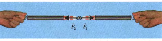 Рис. 9.1. Динамометры действуют друг на друга с силами, равными по модулю и направленными противоположно Этот и другие подобные опыты свидетельствуют, что выполняется