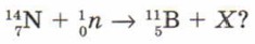 Р е ш е н и е. Используя сохранение массового числа и закон сохранения электрического заряда, получаем, что массовое число неизвестной частицы равно 4, а зарядовое число равно 2. Следовательно, это α-частица. О т в е т: α-частица. Первое искусственное превращение атомных ядер, то есть первую искусственную ядерную реакцию осуществил Резерфорд, бомбардируя α-частицами ядра азота. Уравнение этой реакции имеет вид