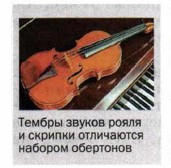 Звуки от других источников (например, звуки различных музыкальных инструментов, голоса людей, звук сирены и многие другие) представляют собой совокупность гармонических колебаний разных частот, т. е. совокупность чистых тонов. Самая низкая (т. е. самая малая) частота такого сложного звука называется основной частотой, а соответствующий ей звук определённой высоты — основным тоном (иногда его называют просто тоном). Высота сложного звука определяется именно высотой его основного тона. Все остальные тоны сложного звука называются обертонами. Частоты всех обертонов данного звука в целое число раз больше частоты его основного тона (поэтому их называют также высшими гармоническими тонами). Обертоны определяют тембр звука, т. е. такое его качество, которое позволяет нам отличать звуки одних источников от звуков других. Например, мы легко отличаем звук рояля от звука скрипки даже в том случае, если эти звуки имеют одинаковую высоту, т. е. одну и ту же частоту основного тона. Отличие же этих звуков обусловлено разным набором обертонов (совокупность обертонов различных источников может отличаться количеством обертонов, их амплитудами, сдвигом фаз между ними, спектром частот).