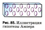 На рисунке 85 показано, что в постоянных магнитах эти элементарные кольцевые токи ориентированы одинаково. Поэтому магнитные поля, образующиеся вокруг каждого такого тока, имеют одинаковые направления. Эти поля усиливают друг друга, создавая поле внутри и вокруг магнита.