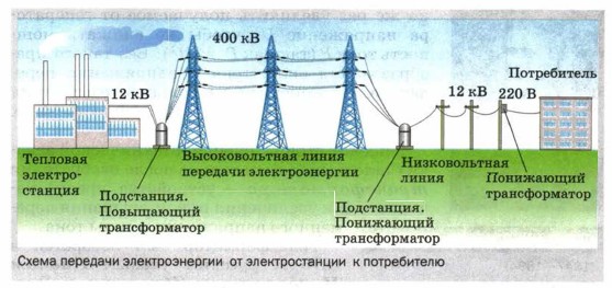 Для передачи электроэнергии от электростанций в места её потребления служат линии электропередачи (ЛЭП). Чем дальше от электростанции находится потребитель тока, тем больше энергии Q тратится на нагревание проводов и тем меньше доходит до потребителя: