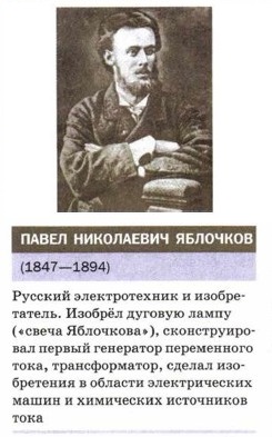 Теперь вернёмся к вопросу о передаче электроэнергии от электростанции к месту её потребления. Напряжение, вырабатываемое генератором, обычно не превышает 25 кВ. А для оптимальной передачи электроэнергии на большие расстояния требуется напряжение порядка сотен киловольт. Поэтому ток с электростанции сначала подаётся на расположенную неподалёку повышающую трансформаторную подстанцию, где напряжение повышается до нескольких сотен киловольт (в большинстве случаев оно не превышает 750 кВ), и под таким напряжением подаётся в ЛЭП. Поскольку такое высокое напряжение не может быть предложено потребителю, то в конце линии его подают поочерёдно на несколько трансформаторных подстанций, понижающих напряжение до 380 или 220 В, а затем — на предприятия или в жилые дома. Трансформаторы нашли широкое применение в быту. Например, при подзарядке сотового телефона имеющийся в зарядном устройстве трансформатор понижает напряжение, полученное из осветительной сети и равное 220 В, до 5,5 В, пригодного для телефона. В телевизоре имеется несколько трансформаторов (как понижающих, так и повышающих), поскольку для питания различных его узлов требуется напряжение от 1,5 В до 25 кВ. Вопросы1. Какой электрический ток называется переменным? С помощью какого простого опыта его можно получить?