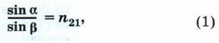 Из уравнения (3) следует, что если угол преломления β меньше угла падения α, то свет данной частоты во второй среде распространяется медленнее, чем в первой, т. е. Взаимосвязь величин, входящих в уравнение (3), послужила веским основанием для появления ещё одной формулировки определения относительного показателя преломления: