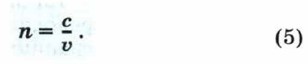 Пусть луч света переходит из вакуума в какую-либо среду. Заменив в уравнении (4)