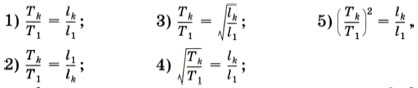 2. Сравните результаты всех четырёх столбцов таблицы 6 и постарайтесь найти в них общую закономерность. На основании этого выберите из пяти приведённых ниже равенств те, которые верно отражают зависимость между периодом колебаний маятника Т и его длиной