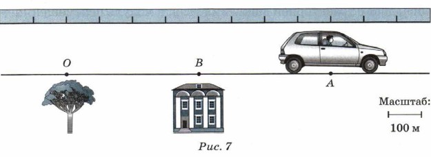 Глава 1. Законы механики § 1. Основные понятия механики (окончание)Вопросы для самопроверки 1. Что называют механическим движением? 2. Что называют системой отсчёта? Зачем вводят систему отсчёта? 3. В чём состоит основная задача механики? 4. Что называют материальной точкой? Зачем вводят модель — материальная точка? 5. Можно ли, зная начальное положение тела и путь, пройденный им за некоторый промежуток времени, определить положение тела в конце этого промежутка времени? 6. Что называют перемещением? Задание 1 1. Автомобиль, движущийся по прямолинейному участку дороги, остановился в точке А (рис. 7). Каковы координаты точки А в системе отсчёта, связанной: а) с деревом (точка О) на обочине дороги; б) с домом (точка В)?