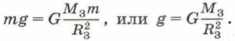 где М3 — масса Земли, m — масса тела, R3 — радиус Земли. Приравнивая правые части записанных равенств, получим: