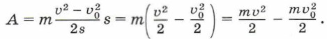 Сила F, действующая на тело, совершает работу А = Fs. Из второго закона Ньютона найдём силу: F = mа. Ускорение, с которым движется тело, равно: Подставив в формулу работы выражения для силы и перемещения, получим: