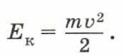 В левой части равенства стоит работа силы. В правой части равенства стоит разность величин, характеризующих состояние движущегося тела в некоторые моменты времени. Эти величины называют кинетической энергией тела в конечном и начальном положениях. Кинетическая энергия тела вычисляется по формуле: