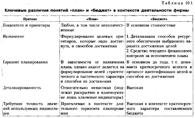 Основные различия между планом и бюджетом, инвариантные относительно описанных подходов, систематизированы в табл. 10.1.
