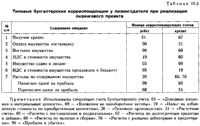 Типовые бухгалтерские корреспонденции у лизингодателя при реализации лизингового проекта