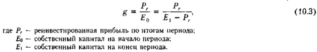 При выводе формулы (10.4) показатель ROE исчислялся соотнесением чистой прибыли с величиной собственного капитала на конец периода. Возможен другой вариант, когда чистая прибыль соотносится с величиной собственного капитала на начало периода, т. е. с Еg. В этом случае имеем следующее соотношение: