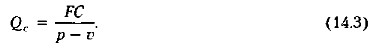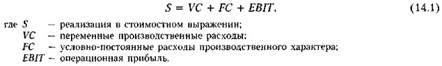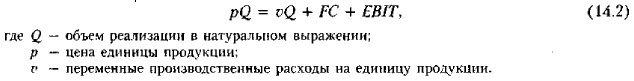 В точке безубыточности по определению прибыль равна нулю, т, е. EBIT = О, поэтому из (14,2) можно найти соответствующий объем продаж (в натуральных единицах), называемый критическим