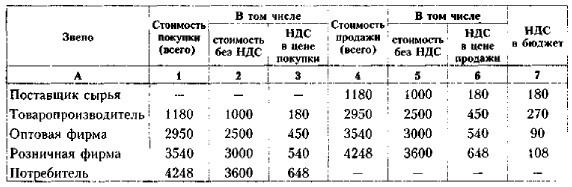 6. Видно, что вся сумма НДС включена в стоимость товара для конечного потребителя. Здесь мы видим проявление * косвенности» НДС — платит его потребитель: остальные звенья занимаются лишь его умножением и «перевалкой».