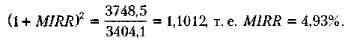 С помощью графика было показано, что денежный поток является неординарным и имеет два значения IRR — 7,3% и 17,25%. Проект следует принять к исполнению, если стоимость источника финансирования (СС) удовлетворяет неравенству 7,3% < СС < 17,25%, причем это можно было выяснить лишь с помощью критерия NPV. Оказывается, критерий MIRR также позволяет сделать правильное заключение о проекте.
