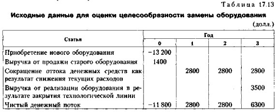 NPV проекта можно рассчитать разными способами. NPV = -11 800 + 2800 • FM4 (8%, 3) + 3500 • FM2 (8%, 3) = 252,6 долл. Поскольку NPV > 0, решение о замене целесообразно принять. Вторая ситуация характерна для производств с высокой интенсивностью использования оборудования. В этом случае нередко возникает вопрос: продолжать эксплуатировать оборудование или его целесообразно досрочно заменить на аналогичное?