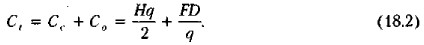 Несложно вывести одно из возможных представлений модели управления запасами. Введем обозначения: q — размер заказываемой партии запасов, ед.; D — годовая потребность в запасах, ед.; F — затраты по размещению и выполнению одного заказа (обычно предполагаются постоянными), руб.; Н — затраты по хранению единицы производственных запасов, руб.; Сс — затраты по хранению, руб.; Сo — затраты по размещению и выполнению заказа, руб.; Сt — общие затраты, руб.