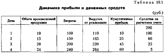 Управление оборотными средствами фирмы Управление денежными средствами и их эквивалентамиУправление денежными средствами является одним из важнейших направлений деятельности финансового менеджера и включает расчет времени обращения денежных средств (финансовый цикл), анализ денежного потока, его прогнозирование, определение оптимального уровня денежных средств, составление бюджетов денежных средств и т. п. Значимость такого вида активов, как денежные средства, по мнению Дж. Кейнса (John Maynard Keynes, 1883—1946), определяют основные причины: (1) рутинность; денежные средства используются для выполнения текущих операций; поскольку между входящими и исходящими денежными потоками всегда имеется временной лаг, предприятие вынуждено постоянно держать свободные денежные средства на расчетном счете; (2) предосторожность; деятельность предприятия не носит жестко предопределенного характера, поэтому денежные средства необходимы для выполнения непредвиденных платежей; (3) спекулятивность; денежные средства необходимы по спекулятивным соображениям, поскольку постоянно существует ненулевая вероятность того, что неожиданно представится возможность выгодного инвестирования. Вместе с тем омертвление финансовых ресурсов в виде денежных средств связано с определенными потерями; с некоторой долей условности их величину можно оценить размером упущенной выгоды от участия в каком-либо доступном инвестиционном проекте. Поэтому любое предприятие должно учитывать два взаимно исключающих обстоятельства: поддержание текущей платежеспособности и получение дополнительной прибыли от инвестирования свободных денежных средств. Таким образом, одной из основных задач управления денежными средствами является оптимизация их среднего текущего остатка. Наличие у предприятия денежных средств нередко связывается с тем, является ли его деятельность прибыльной. Такая связь не всегда очевидна. События переходного периода в России (последнее десятилетие XX в.), когда резко обострилась проблема взаимных неплатежей, подвергли сомнению незыблемость прямой связи между этими показателями. Оказывается, можно быть прибыльным (по данным бухгалтерского учета) и одновременно испытывать значительные затруднения в оборотных средствах, которые могут вызвать не только социально-экономическую напряженность во взаимоотношениях с контрагентами, финансовыми органами, работниками, но и привести к банкротству. Приведем пример. Пример Предприятие ежедневно закупает сырье в объеме дневной потребности на условиях оплаты наличными. Производственный цикл занимает один день. Деньги на расчетный счет за реализованную продукцию поступают с лагом в один день. Расходы по производству единицы продукции составляют 10 руб., цена реализации — 11 руб. Продукция пользуется спросом, поэтому предприятие наращивает производство. Динамика результатов работы предприятия будет иметь следующий вид (табл. 18.1).